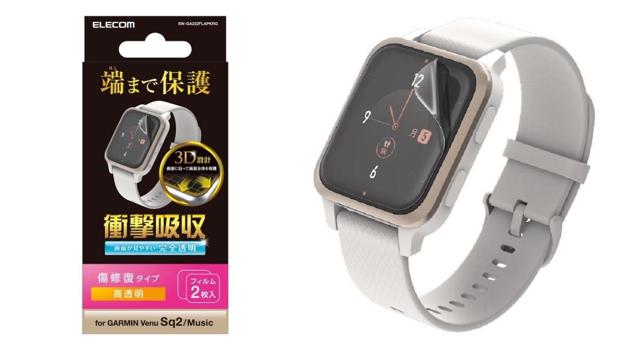 <GARMIN Venu Sq 2 衝撃吸収 指紋防止 傷リペア 高透明>
