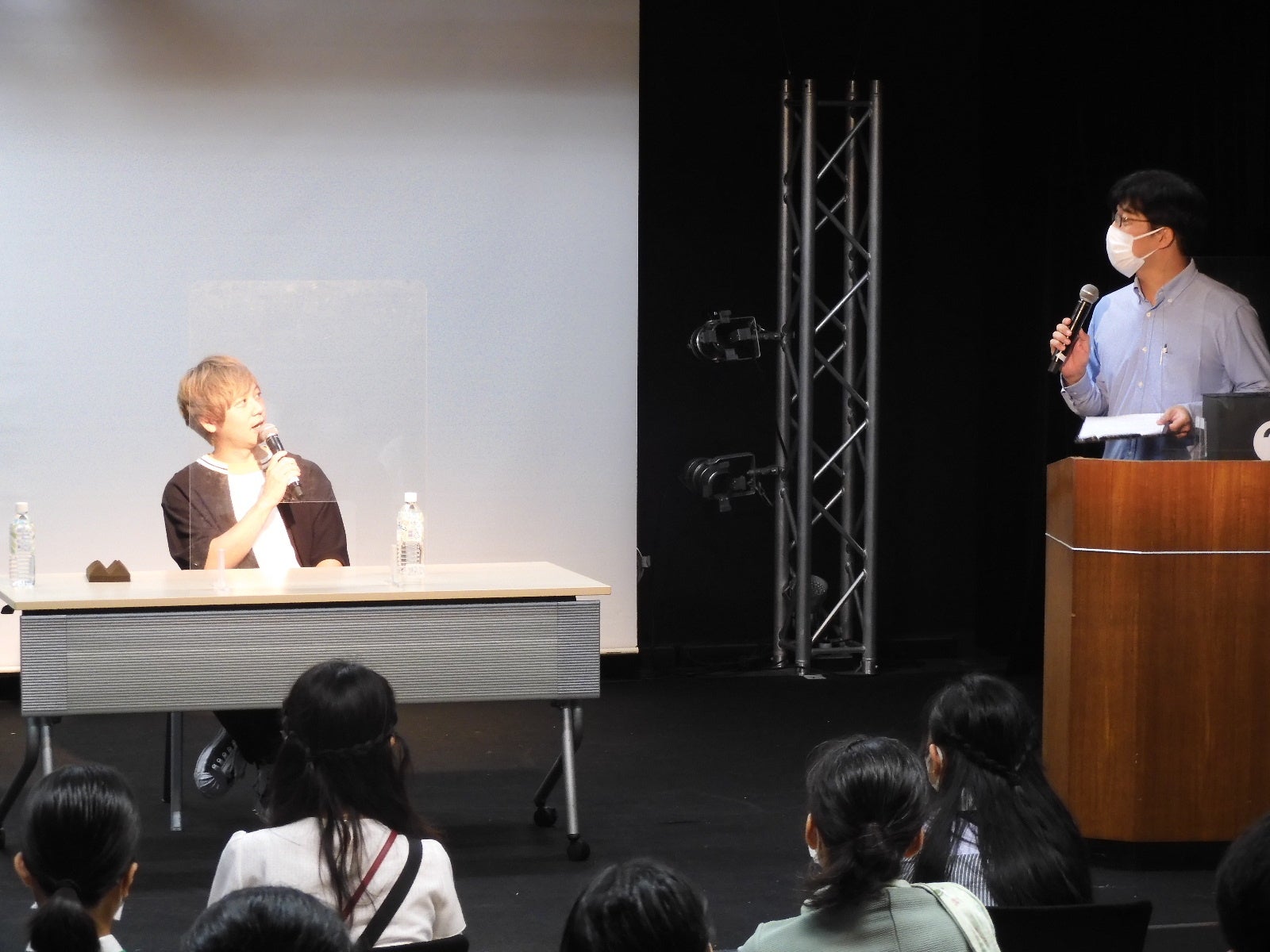 アニメ「東京リベンジャーズ」佐野万次郎、「ハイキュー!!」田中龍之介、「呪術廻戦」猪野琢真など、数多くの人気作品に出演し、音楽ユニットSCREEN modeのヴォーカル・勇-YOU-としても活躍中の林勇さん(賢プロダクション所属)が来校。