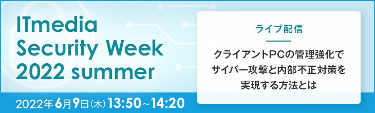 ライブ配信セミナー「ITmedia Security Week 2022 夏」に協賛、『クライアントPCの管理強化でサイバー攻撃と内部不正対策を実現する方法とは』をテーマに講演を実施いたします