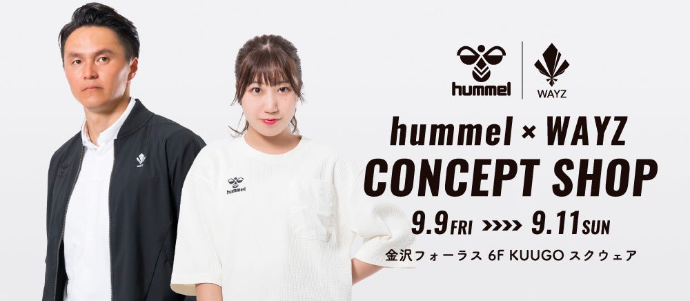 この度、ユニフォームサプライヤー「hummel(ヒュンメル)」と、ツエーゲン金沢のアパレルブランド「WAYZ(ウェイズ)」のコンセプトショップが、9月9日(金)~9月11日(日)の3日間、金沢市の中心地である金沢駅前のファッションビル「金沢フォーラス」の6階KUUGOスクウェア内にて出店することとなりましたのでお知らせいたします。