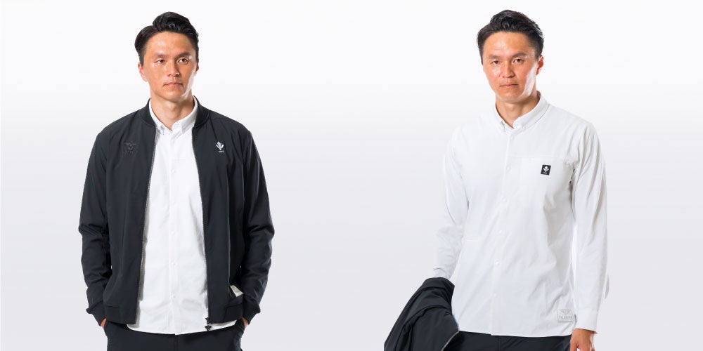 hummelコラボのニューアイテムからは、簡単にきちんと感が出せるスポーティなジャケットとテーパードパンツ、そしてインナーシャツのセットアップが登場!