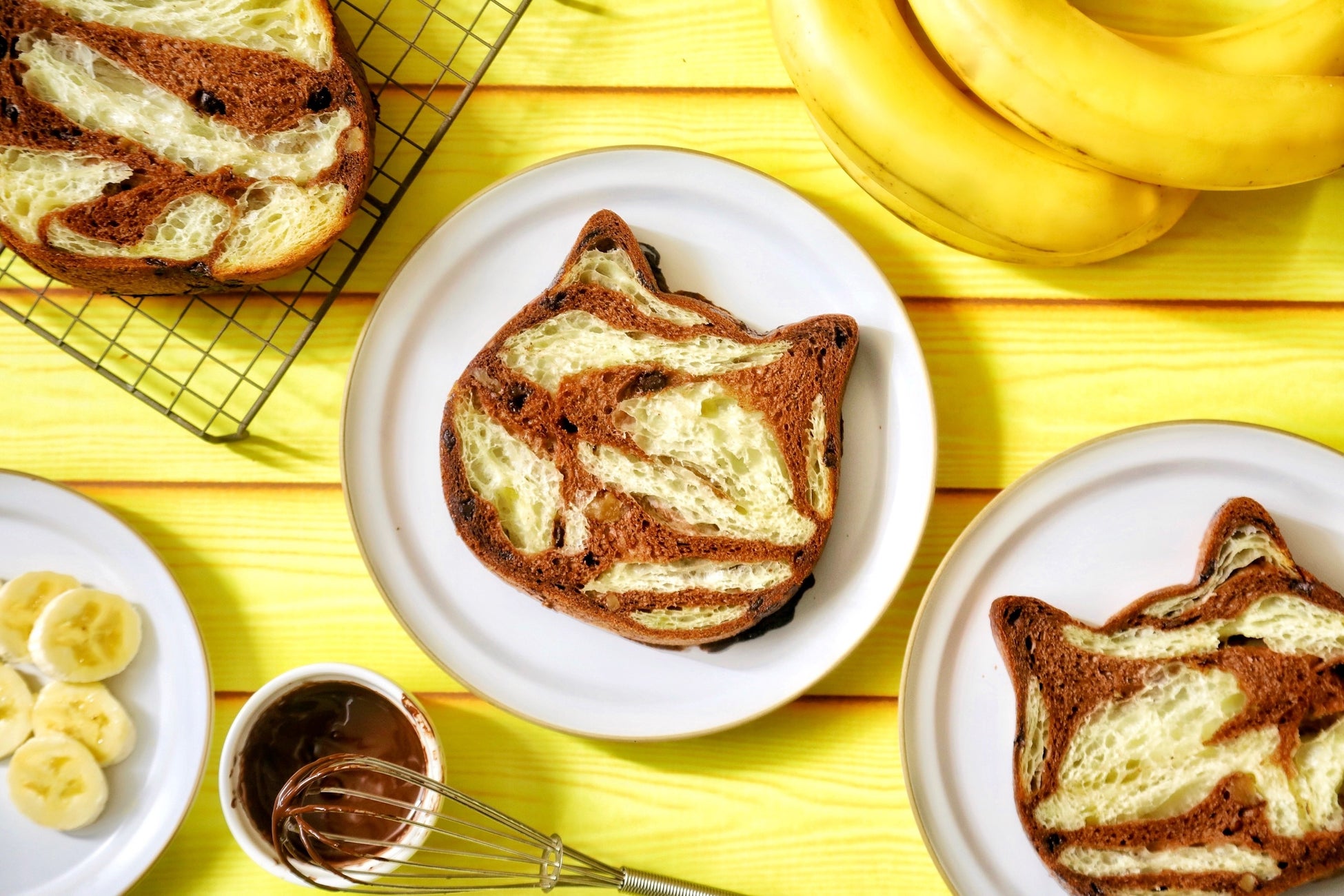 【8/1新発売!甘く香る夏らしいチョコばにゃにゃフレーバー】「ねこねこ」から、全国の店舗およびオンラインストアにて、2種類の生地で特別仕様の「ねこねこ食パン チョコばにゃにゃ」が登場