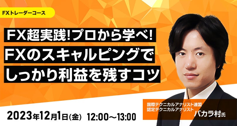 【外為どっとコム】バカラ村氏が解説!『FX超実践!プロから学べ!FXのスキャルピングでしっかり利益を残すコツ』12月1日(金)12時よりオンラインセミナー開講