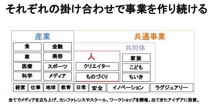 コミュニティ活動を大切にしていることもあり、未来プロジェクト同士の連携も促せるよう、統合支援する会社(https://prtimes.jp/main/html/rd/p/000000366.000018590.html)の設立も準備中です。どんな領域で立ち上げを準備中なのか、下記をご覧いただけたら幸いです。