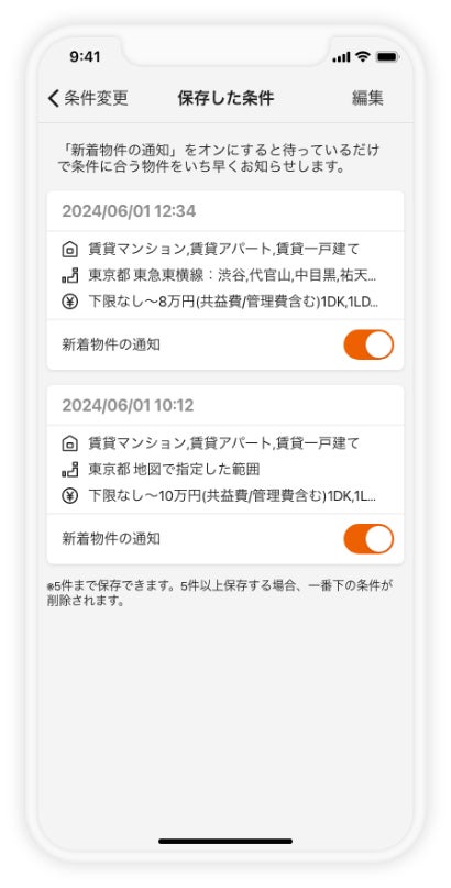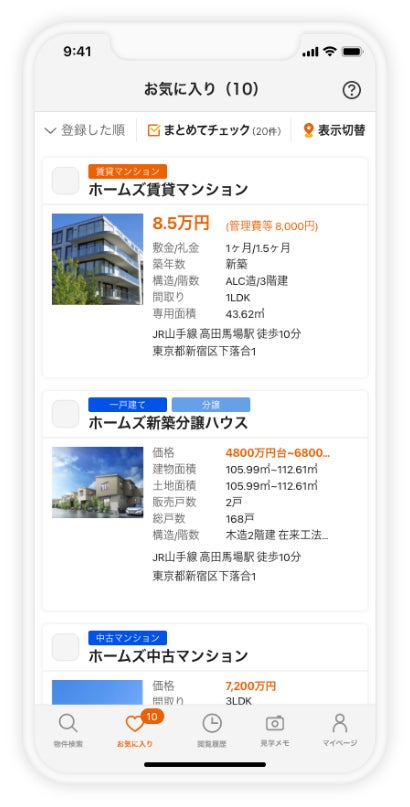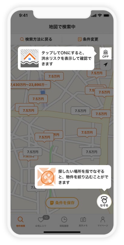 物件検索やお気に入り機能のほか、通知機能などアプリならではの機能を活用