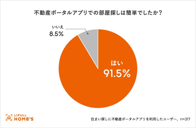 不動産ポータルアプリでの住まい探しについては、91.5%のユーザーが簡単だったと回答しました。