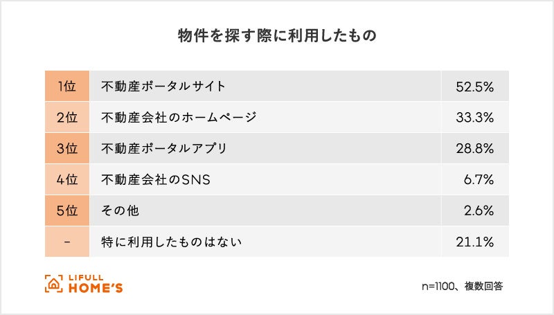 住まい探しに利用したツールは不動産ポータルサイトがトップ