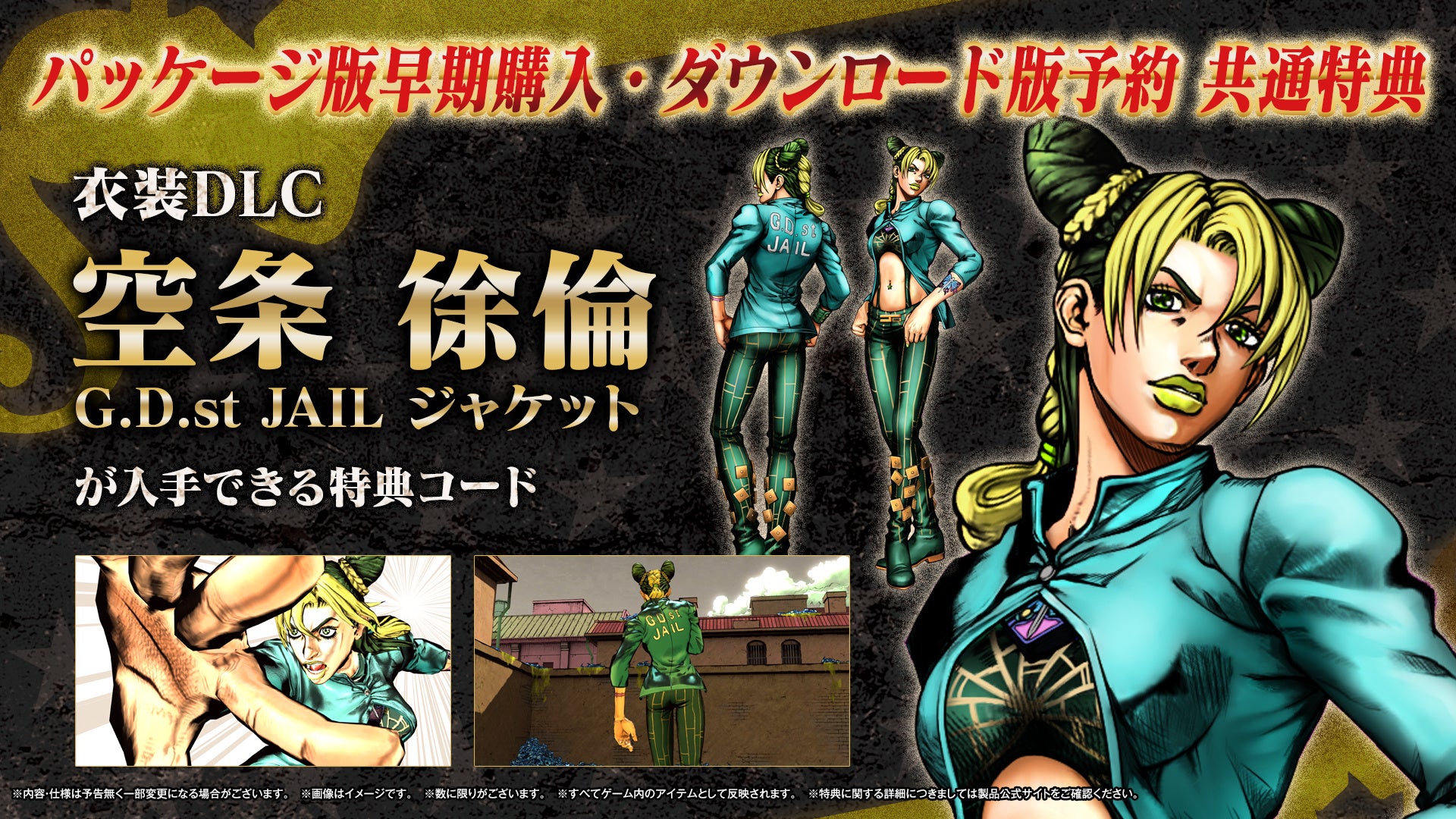 ■パッケージ版早期購入特典 衣装DLC「空条 徐倫 G.D.st JAILジャケット」が入手できる特典コード