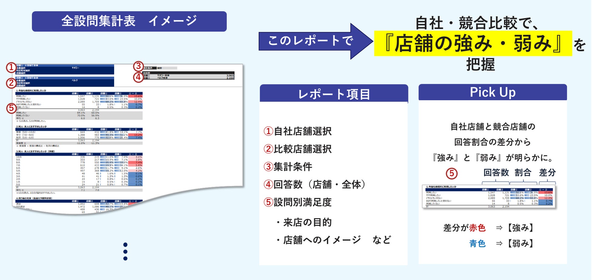 【個店比較レポート ②全設問集計表】で競合他社との詳細比較