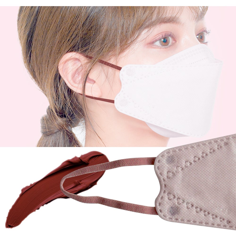 独自のダイヤモンド形状(3段形状)が口元に広い空間を作り出し、口紅やメイクが付きにくいほか、従来の不織布マスクよりも息がしやすい形状となっております。