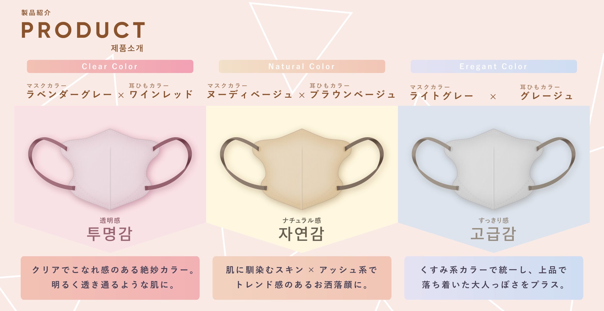 【ぴったりフィットで小顔魅せ】マスク本体と耳ひもがツートンカラーになった3D立体形状不織布マスク“MASCLASS 미모 마스크”初回限定価格780円/30枚入でWEB先行予約販売を開始。
