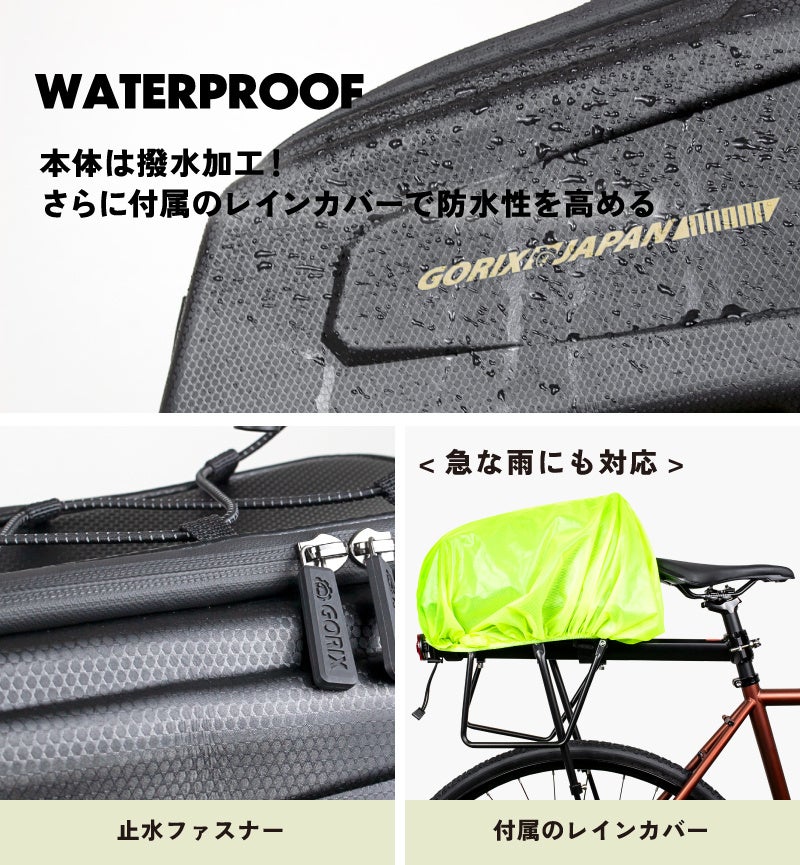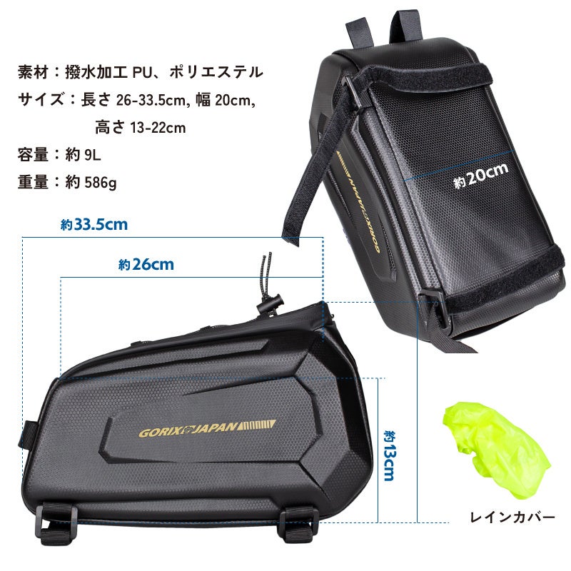 自転車用リアバッグ、レインカバー