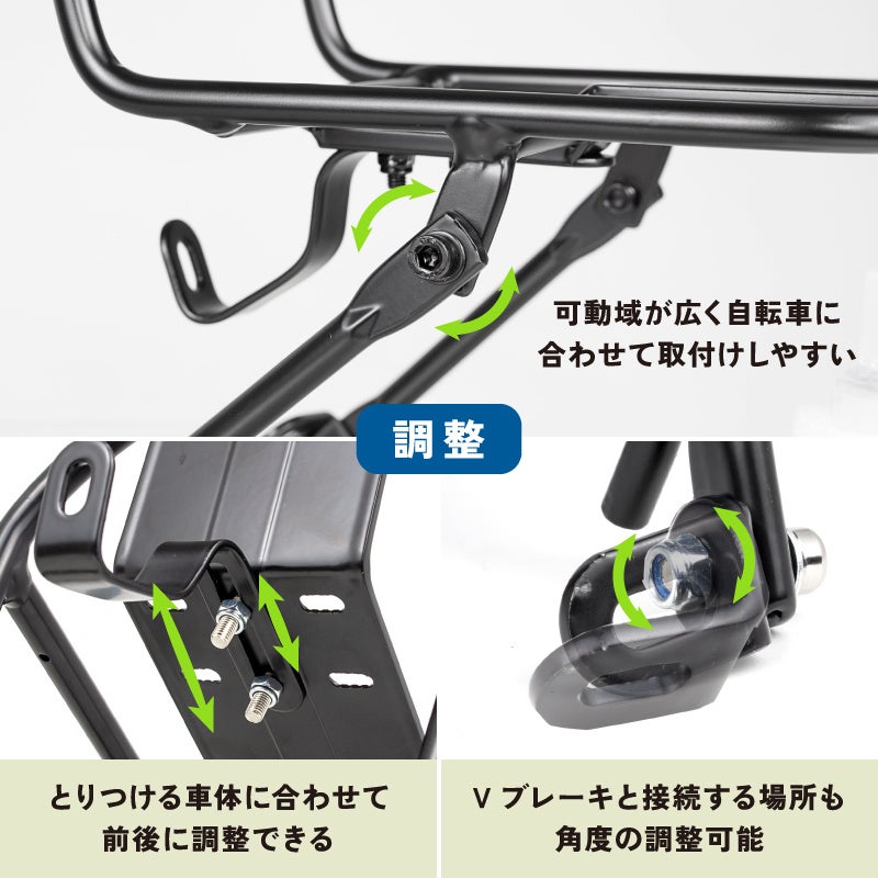 レッグ部分が可動式になっているので幅広い自転車に合わせて取付しやすくなっています。