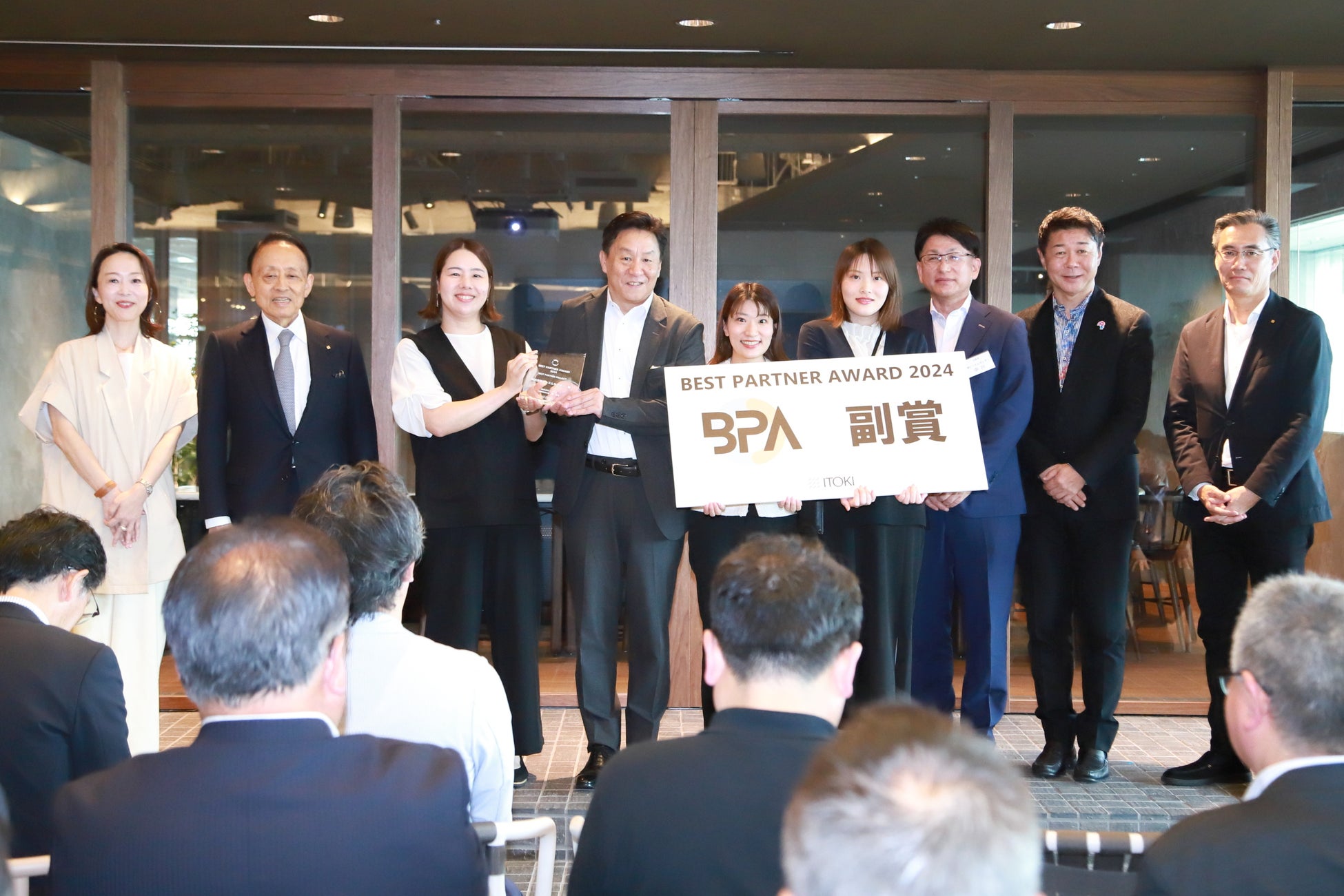 「BEST PARTNER AWARD 2024授賞式」とは、イトーキの全国代理店の中から、オフィスづくりにおける働き方提案や受注活動に創意工夫を凝らし、オフィス家具以外の取り扱い事業とも連携するなど、統合的なアプローチが際立つプロジェクトを表彰する制度です。