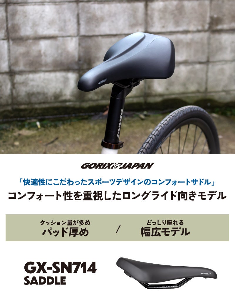【新商品】【集めのクッション!! 幅広座面!!】自転車パーツブランド「GORIX」から、自転車用サドル(GX-SN714) が新発売!!