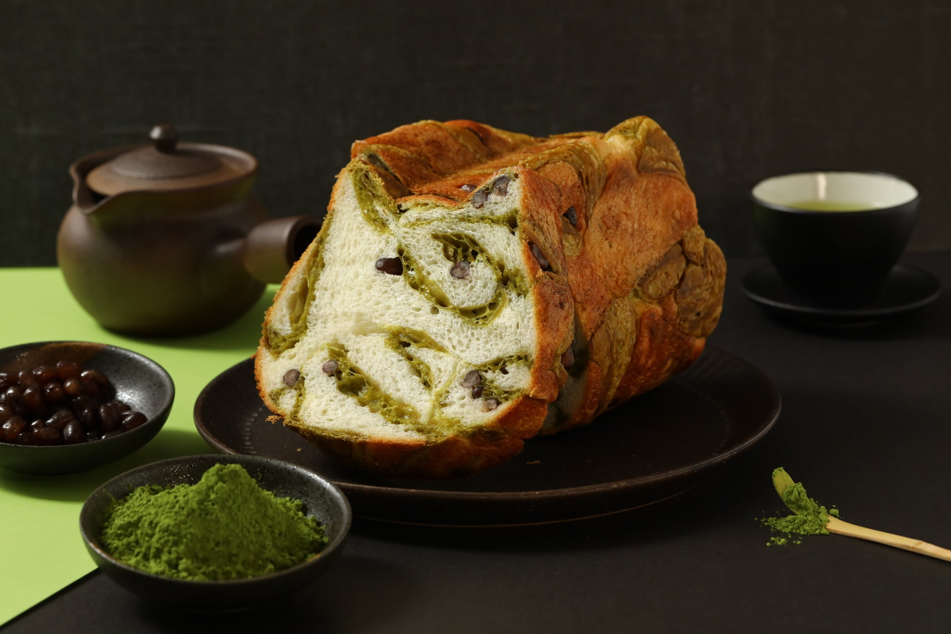「ねこねこあずきと抹茶デニッシュ」は、抹茶がほのかに香るデニッシュ生地と、ミルキーな味わいが特徴の「ねこねこ食パン」の生地で小豆かのこを巻いて焼き上げた、オンライン限定の新フレーバーです。