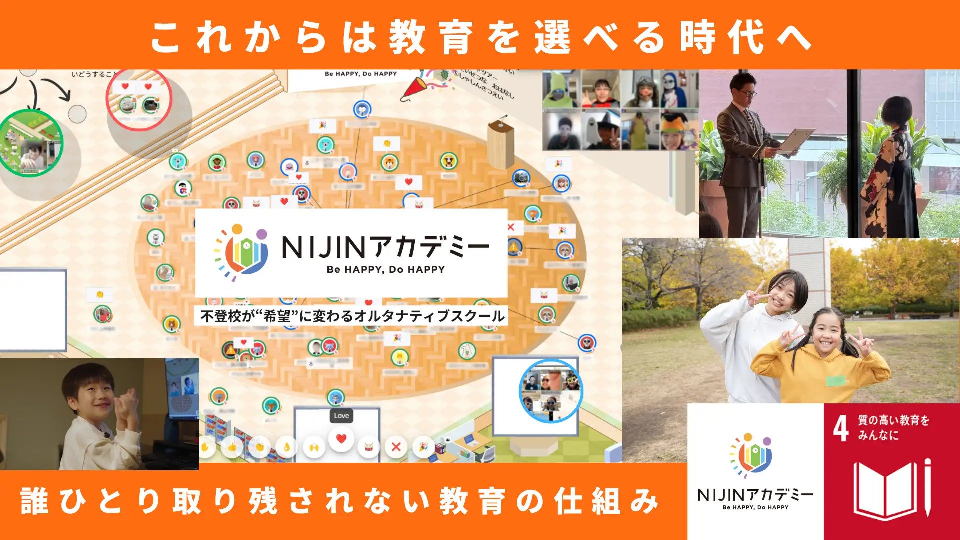 2023年9月に開校した不登校小中学生向けのオルタナティブスクールで、全国38以上の都道府県から約450名超が入学している。「多層的な心理的安全性」「一流教師による対話的な授業」「子ども主体のプロジェクト」をカリキュラムの柱に、学校に行けないことが劣等感・罪悪感にならず、全ての子どもが希望を持てる未来を創る。学校に代わる学びの選択肢として、希望する生徒の9割※以上が在籍校の出席認定を獲得。※2025年6月現在
