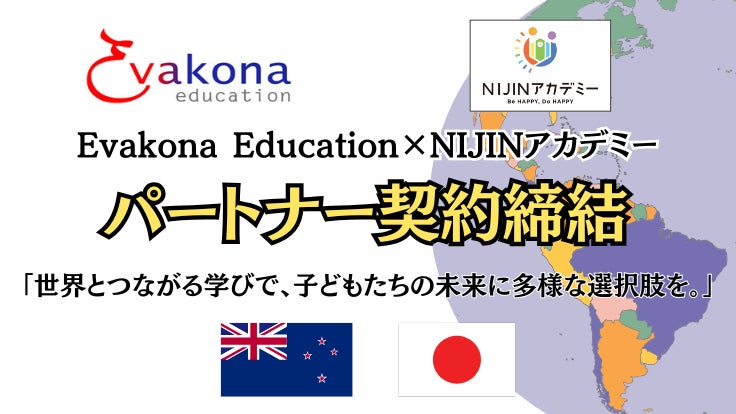 株式会社NIJINが運営するオルタナティブスクールNIJINアカデミーは、ニュージーランドの語学学校・教育機関「Evakona Education」とパートナー契約を締結いたしました。