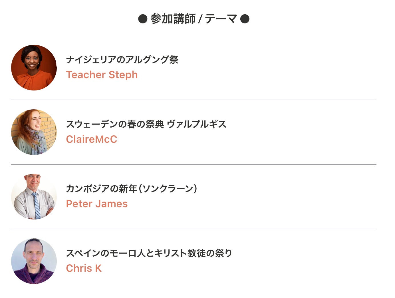 【英語学習者向け・無料配信】世界の英語講師がプレゼン「世界中の春祭り」オンライン配信(2023年4月13日(木)19:00〜配信)