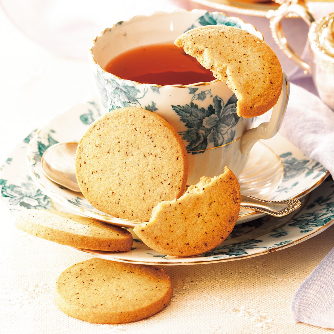 アールグレイの茶葉を生地に練り込んで、歯ざわりよく焼き上げました。そのまま味わうのはもちろん、紅茶やミルクなどに浸し、しっとりさせて食べるのもおすすめ。イギリスの国民食とも言われるビスケットで本場のティータイム気分を味わってみては。