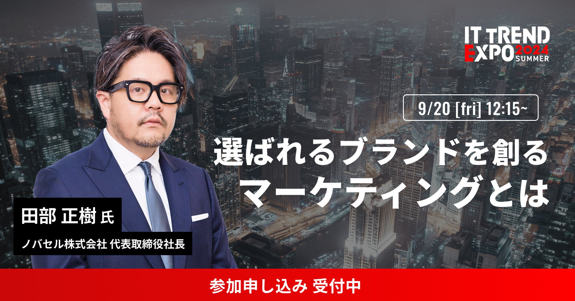 業界最大級のオンライン展示会「ITトレンドEXPO2024 Summer」ノバセル株式会社 代表取締役社長 田部 正樹 氏の講演内容が決定!