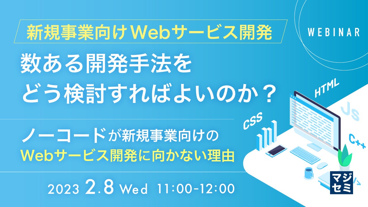 マジセミ株式会社はノーコードが新規事業向けのWebサービス開発に向かない理由というテーマのウェビナーを開催します。
