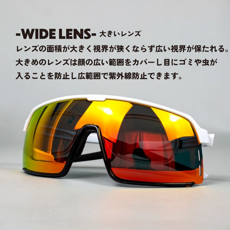レンズの面積が大きく視界が狭くならず広い視界が保たれます。
