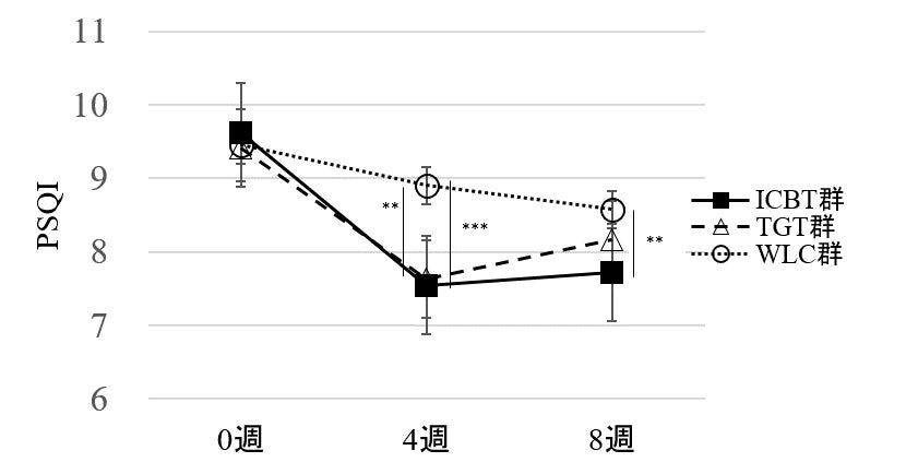 これらの結果から、不眠の問題を抱えた成人に、ガイドなしのインターネット・セルフヘルプ認知行動療法、および「3つの良いこと」エクササイズを4週間実施することで、睡眠の質や不眠症状に有意な改善を期待できることが明らかになりました。