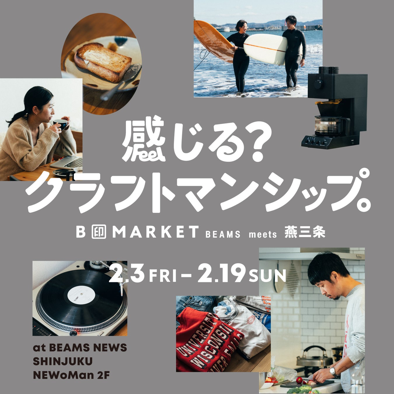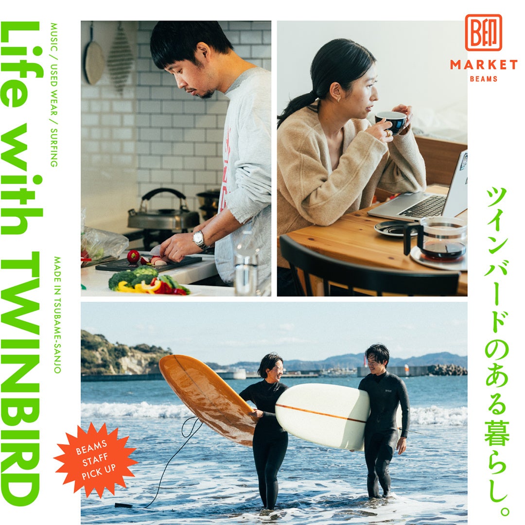 〈B印MARKET BEAMS〉は、2月3日(金)〜2月19日(日)に、東京・新宿駅構内の「BEAMS NEWS(ビームス ニューズ)」にて、POP UP SHOPを開催いたします。今回のPOP UP SHOPは、“B印MARKET BEAMS meets 燕三条”と題し、“感じる?クラフトマンシップ。”というコンセプトのもと、ツインバードの家電製品に加え、燕三条に拠点を置く4企業のキッチン用品を期間限定でラインナップいたします。世界に誇る洋食器や金属加工の技術をもつ燕三条にビームススタッフが直接足を運び、職人の手仕事のこだわりや技術を実際に見て触れることで、長年職人たちが培ってきた技術や受け継がれてきた想いを感じるアイテムを厳選しました。音楽や古着、サーフィンなど日々の生活を楽しむビームススタッフのリアルな視点で、おすすめのアイテムをご紹介します。