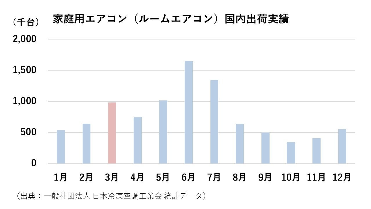 年間の中でも、実は3月はエアコンの出荷や購入が増える月。その背景には、3月が引っ越シーズンであることも一因となっていると推測されます。