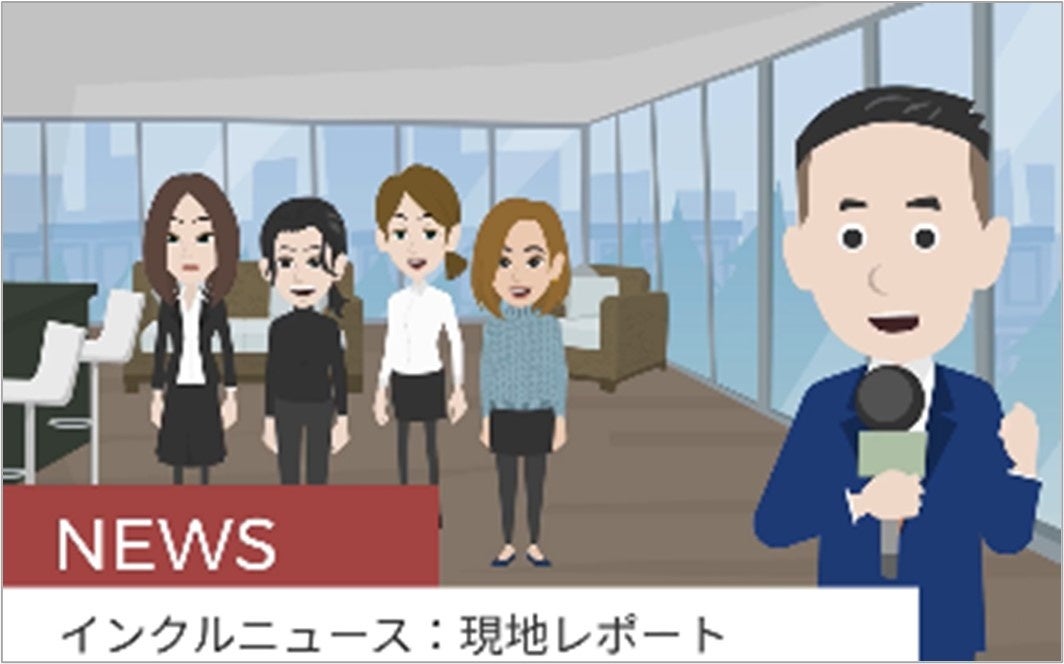 インクルージョンを実践する管理職を「インクル上司®」と名づけ、その内容をアニメーションで紹介しました。部下からの推薦による7名のインクル上司のエピソードを動画にして、全国の社内サイネージで放送しました。