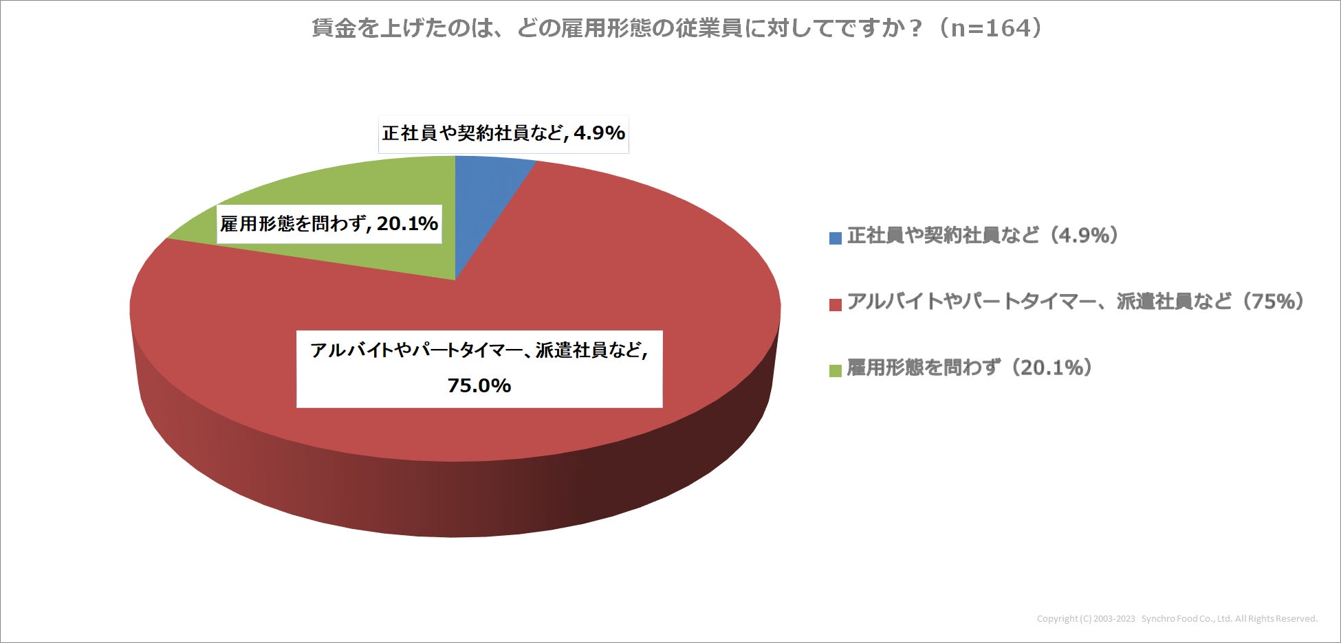 賃金アップしたのは、75%が「アルバイト」。「正社員」は5%弱