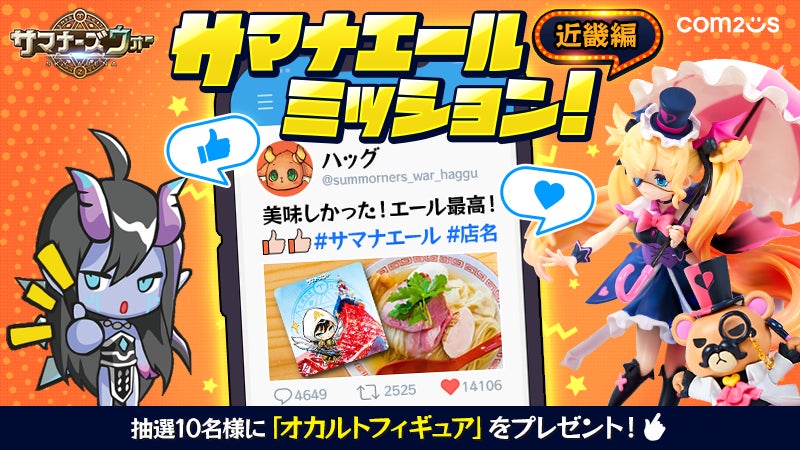 スマートフォン向けモバイルゲームをサービスしている株式会社Com2uS Japanは、iOS/Androidで大好評配信中の本格RPG『サマナーズウォー: Sky Arena』(以下、 サマナーズウォー)と召喚士のお店がコラボする「サマナエールプロジェクト」を近畿地方にて開始しましたことをお知らせします。