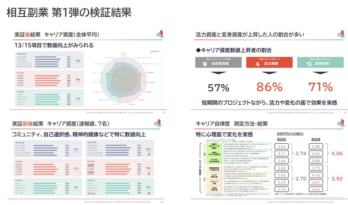 本プロジェクトでは、副業(複業)による個人の成長を測るため、パーソルプロセス&テクノロジー株式会社が提供する『プロテアのキャリア資産診断』を用いて実証前後の変化を可視化してまいります。