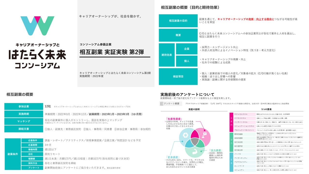 キャリアオーナーシップとはたらく未来コンソーシアム、個人と組織の成長を促す「企業間での相互副業実証実験」第2弾12社が参加し、28案件35名で副業開始