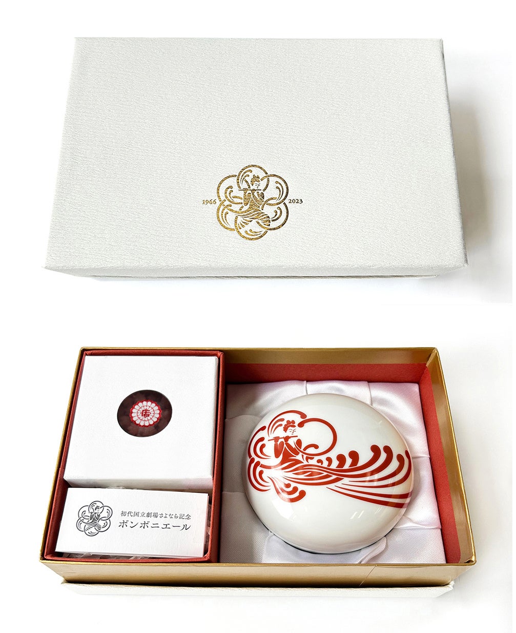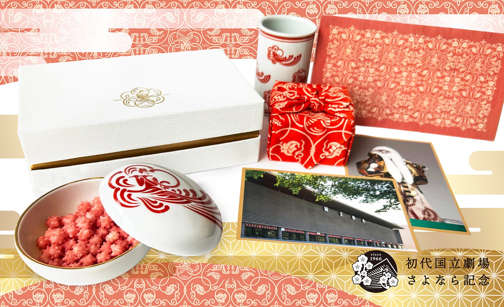 2022年9⽉〜2023年10⽉末まで開催中の「初代国⽴劇場さよなら公演」を記念したオリジナルグッズの第三弾「ボンボニエールと金平糖のセット」を2023年7月3日(月)より販売します。オリジナルグッズは、現在銀座 蔦屋書店と京都岡崎 蔦屋書店にて開催している「初代国⽴劇場さよなら記念フェア」にて販売します。