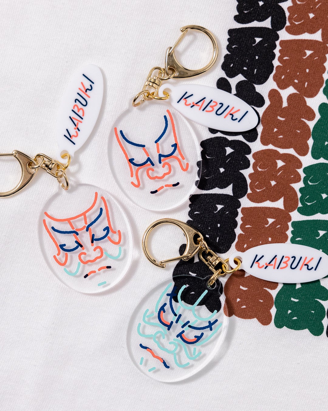 2023年1月に発売し好評を博したコラボレーション第一弾に続く今回は、人気イラストレーター金安亮が描き下ろした、歌舞伎独特の化粧法である”隈取”8種類を落とし込んだアイテム8型を発売。金安亮らしいポップな色使いやシンプルな線のタッチで、迫力ある”隈取”を温かみのある雰囲気で表現したコレクションです。