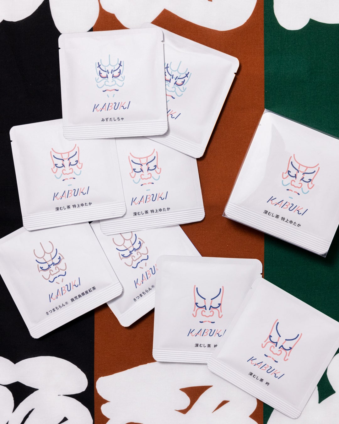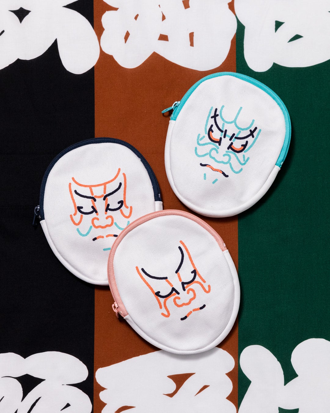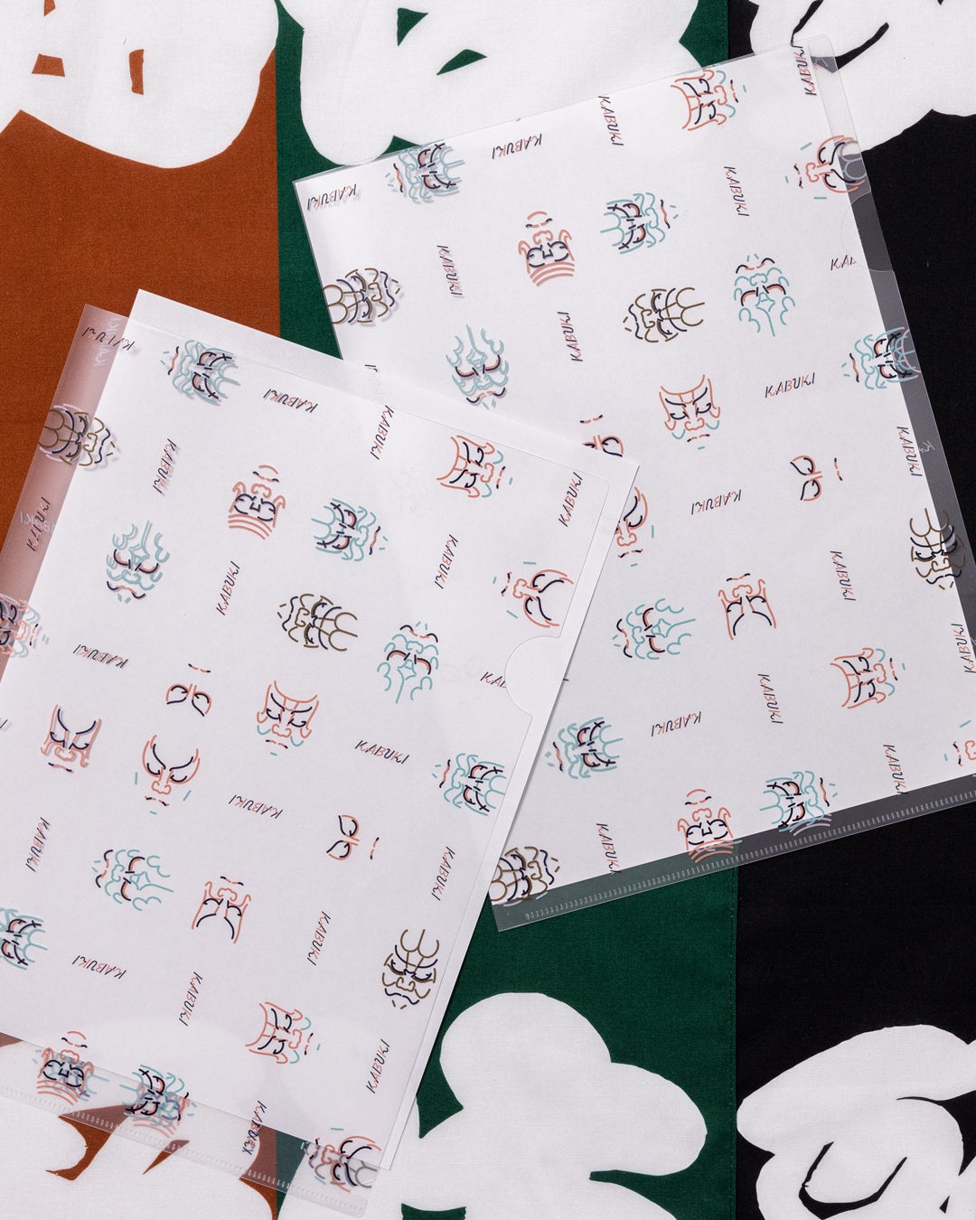 本コラボレーションのイラストには、歌舞伎の役柄で有名な”隈取”を8種類ピックアップ。“隈取”を総柄にデザインした手ぬぐいやクリアファイルや、お茶パックやキーホルダー、ポーチを展開します。