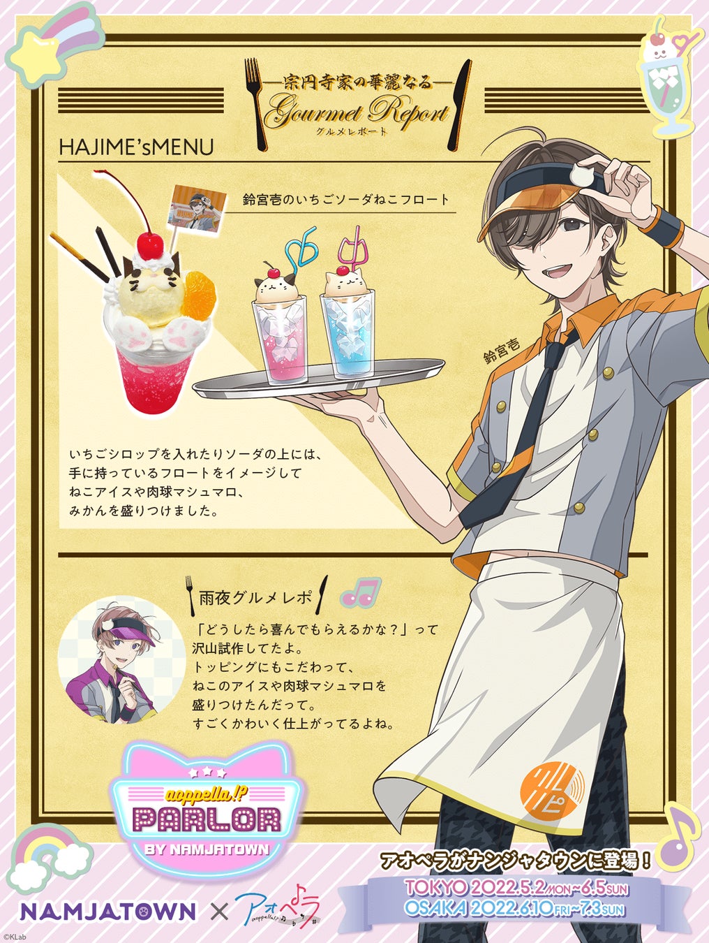 『アオペラ -aoppella!?-』、ナンジャタウンコラボ「aoppella!? parlor」が、5月2日スタート!ねこ耳ミニキャライラスト、グルメレポートを先行公開!!