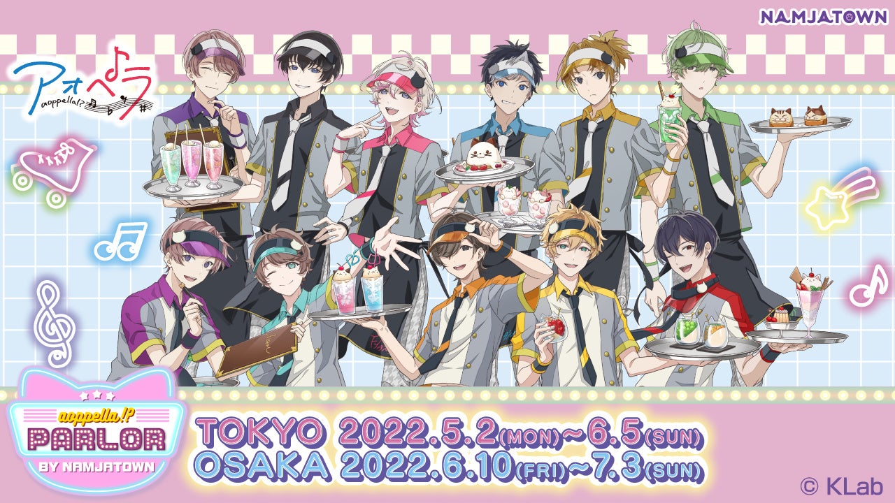 KLab株式会社(本社:東京都港区、代表取締役社長:森田英克、以下「KLab」)がおくる、「青春」×「アカペラ」がテーマの音楽原作プロジェクト『アオペラ -aoppella!?-』(以下、『アオペラ』)は、2022年5月2日(月)より6月5日(日)まで、屋内型テーマパーク「NAMJATOWN(ナンジャタウン)」(東京・池袋)においてコラボイベント「aoppella!? parlor」を開催します。