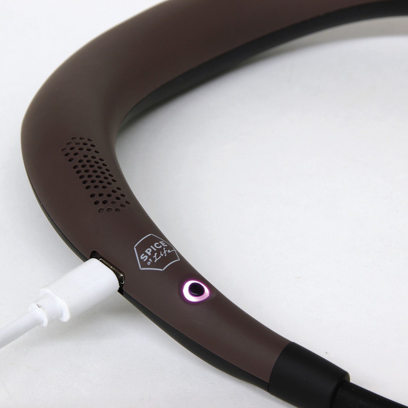 ・首から掛けるタイプなので両手が自由になり、耳を塞がないタイプのBluetoothスピーカーで耳への負担もなく、電話通話中に扇風機を使用しても風音が聴こえにくく涼みながら会話に集中できます。