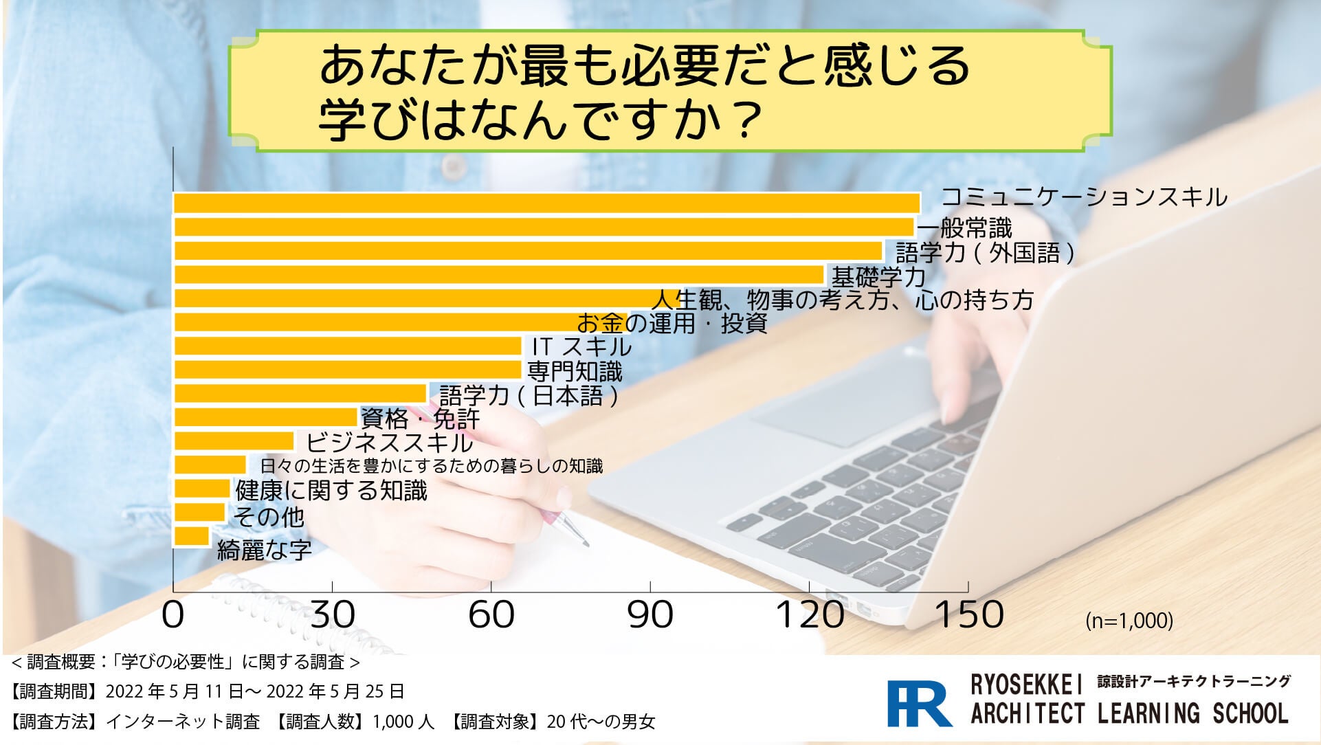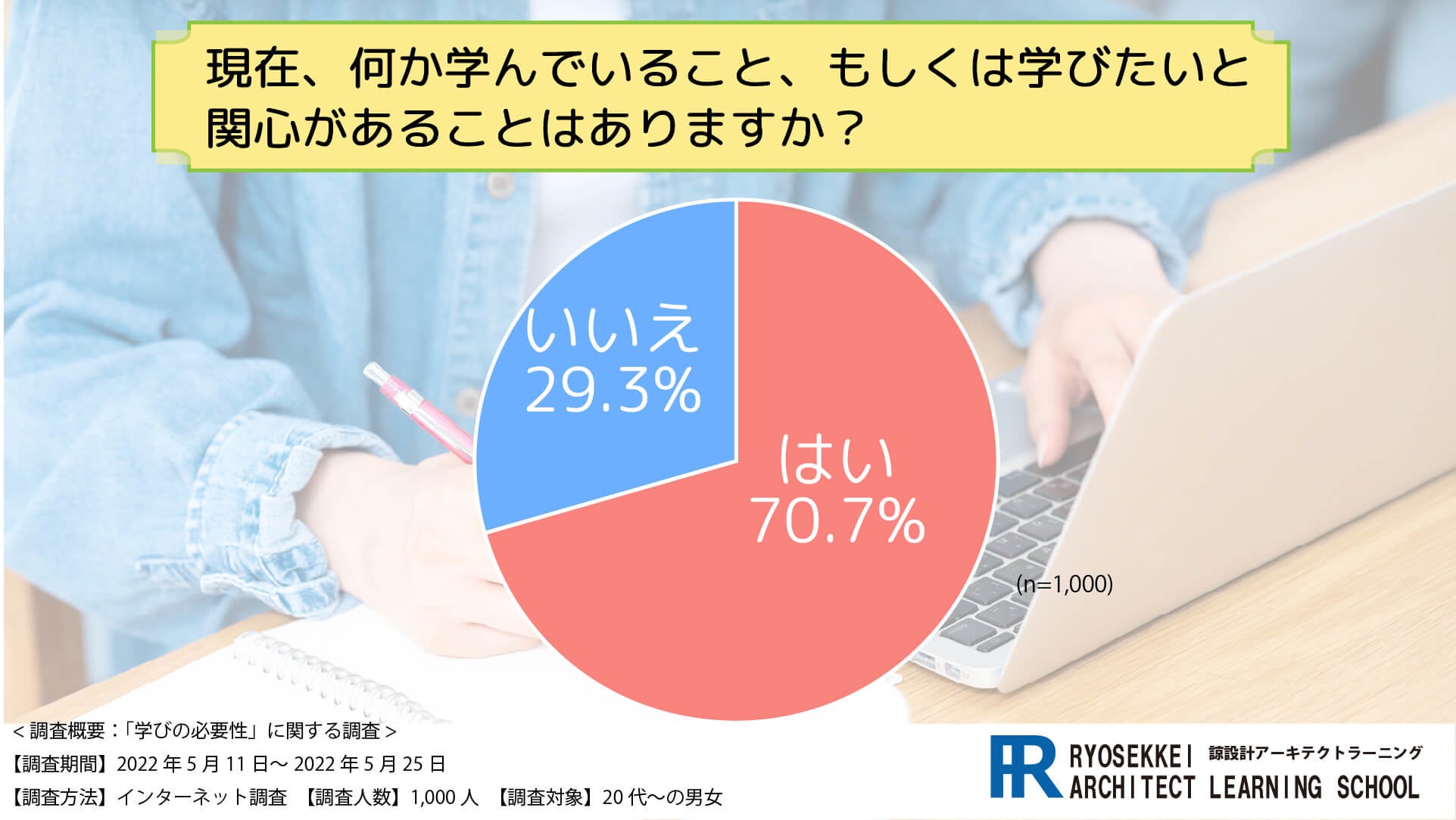 そこで今回、通信教育講座・資格の『諒設計アーキテクトラーニング』(https://www.designlearn.co.jp/)を運営する株式会社新生技術開発研究所は、「学びの必要性」についてのアンケート調査を実施しました。