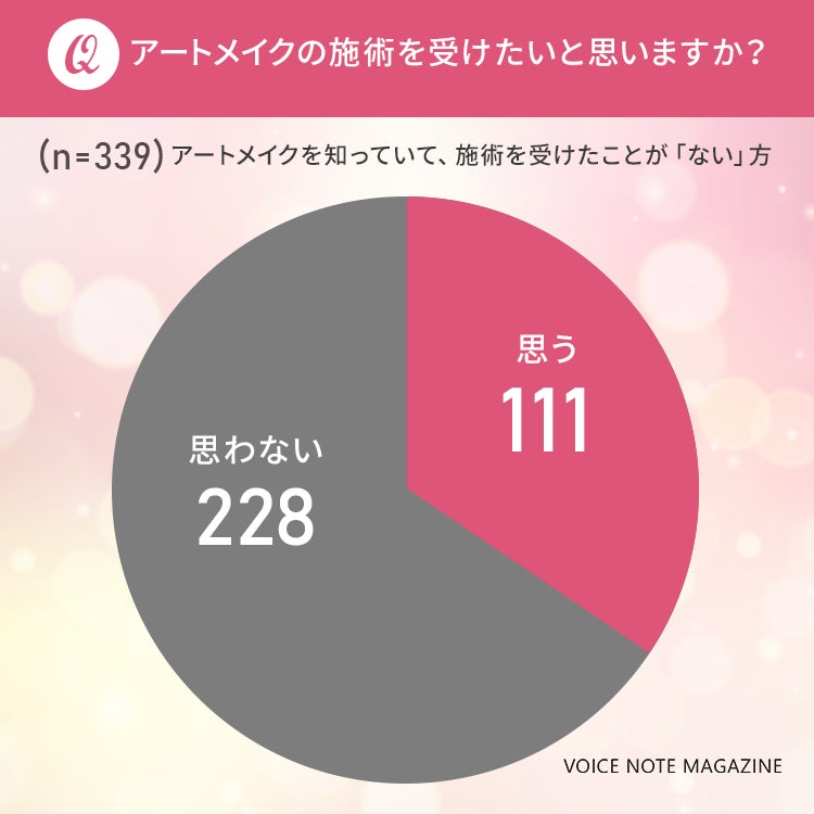 339人中111人(32.7%)がアートメイクの施術を受けたいと思っているようです。