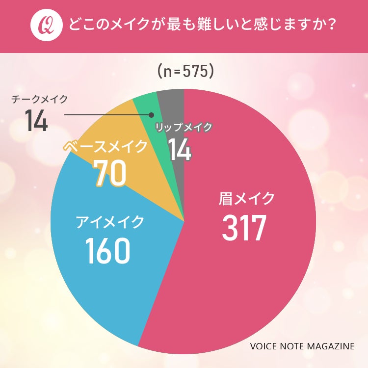 575人中317人(55.1%)と、半数以上の方が「眉メイク」が最も難しいと感じていることがわかりました。