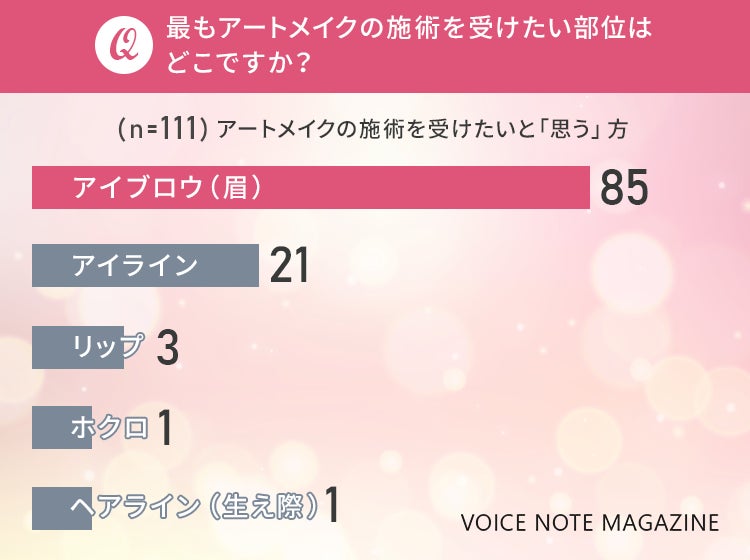 アートメイクの施術を受けたいと思っている方々に、どの部位のアートメイク施術を受けたいか聞きました。