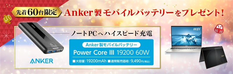 最新モデルを含む対象ノートPCが最大10万円OFF! 対象ノートPCのご購入でAnker製モバイルバッテリーなどもプレゼント! 『MSIストア年末年始スペシャルキャンペーン』