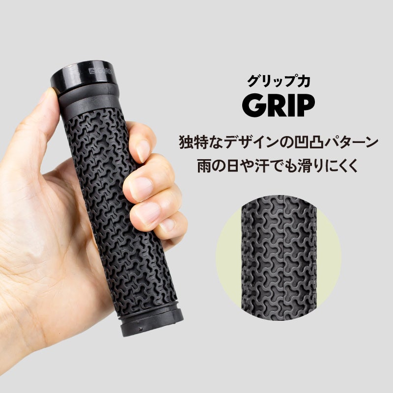 クロスバイクやマウンテンバイク、ミニベロ、小径車などのフラットハンドルのグリップ交換に最適です。ストレートタイプで表面の特長的な凸凹パターンはグリップ力を高めます。