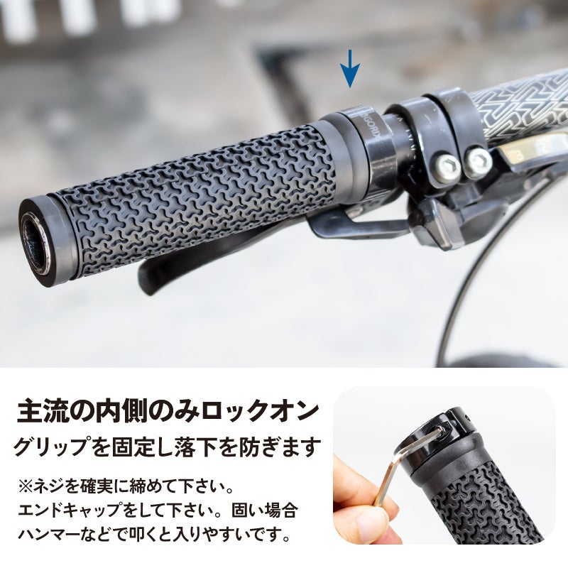 取付上の注意 | ロックオンのネジはグリップが動かないように確実に締めて下さい。 |