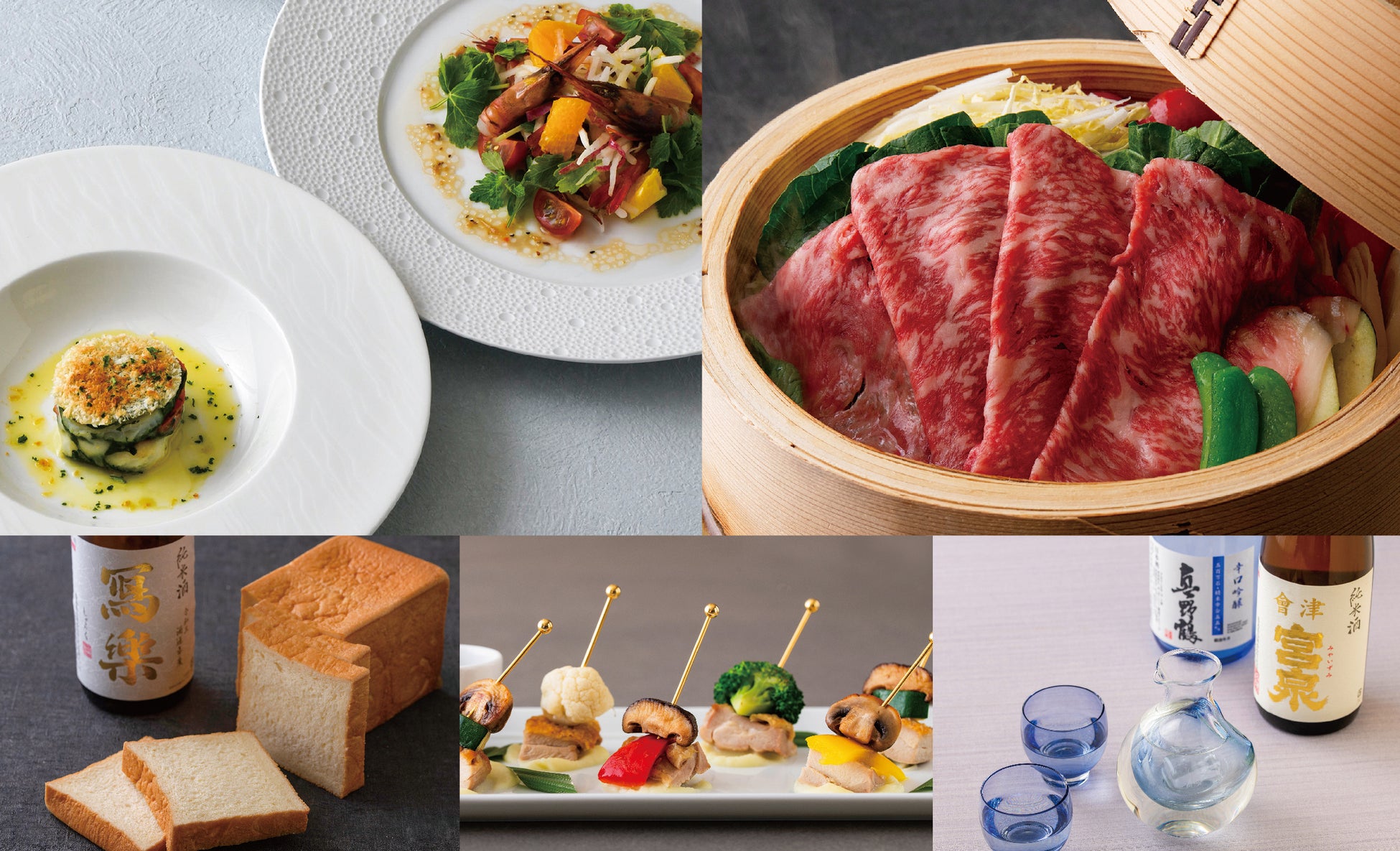 会津地方は山々に囲まれ、夏は暑く、冬は雪深い四季折々の風土があります。佐渡もまた、海に囲まれ、四季の変化に富み、農業や漁業が盛んな地域です。そんな会津と佐渡の自然の恵みをたっぷり受けた厳選食材を用い、郷土の知恵から受けるインスピレーションを大切に、各レストランのシェフが腕をふるった料理の数々を提供いたします。