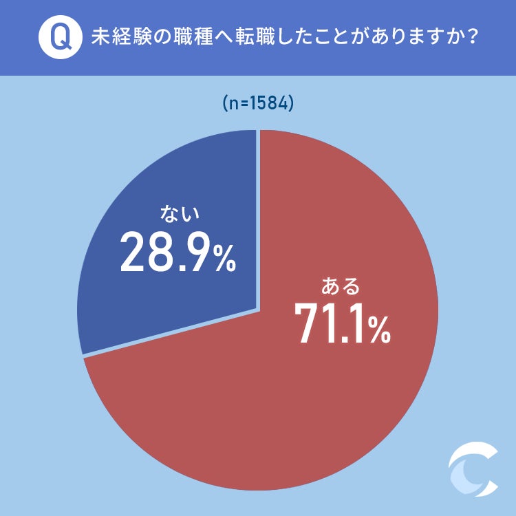 転職経験がある方のうち、未経験職種への転職をしたことがある方は71.1%という結果になりました。